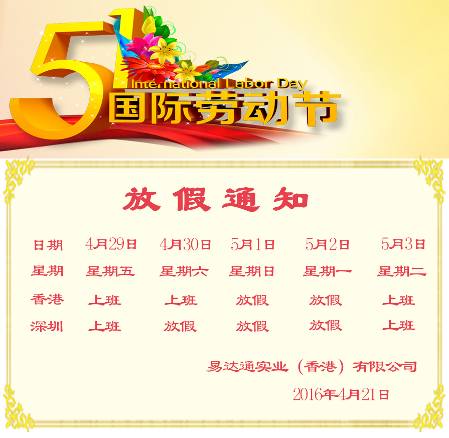 深圳市怡達(dá)通進(jìn)出口有限公司五一放假通知