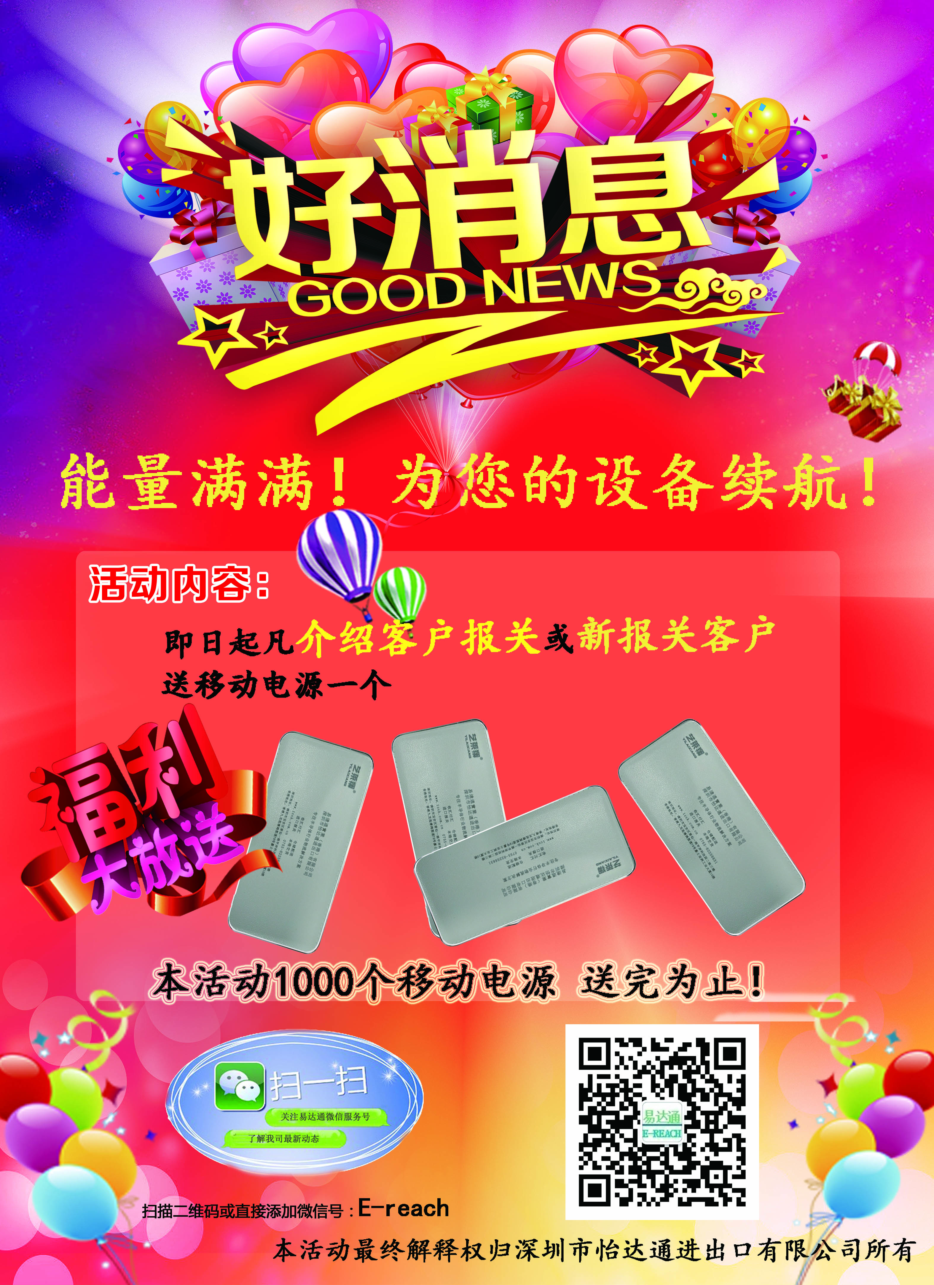 好消息??!即日起凡介紹客戶報關或新客戶報關送充電寶啦?。?!