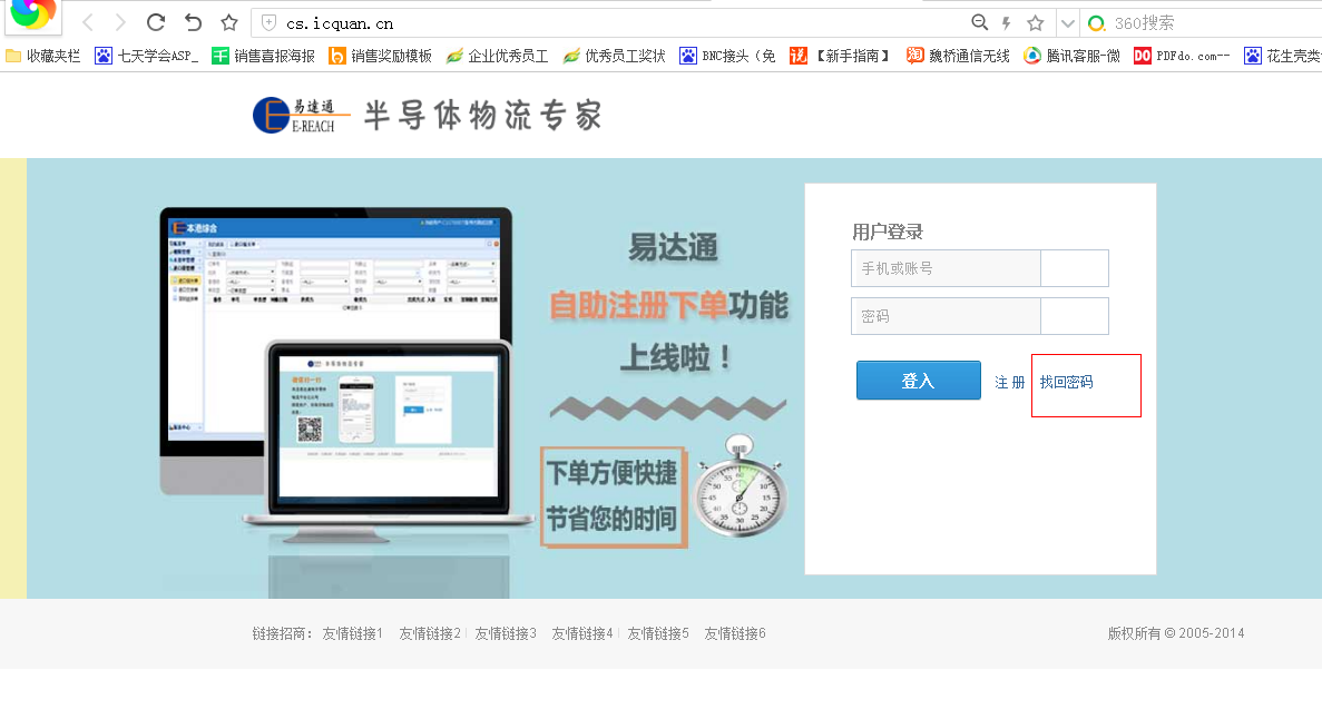 進(jìn)入客戶系統(tǒng)cs.icquan.cn,點(diǎn)擊“找回密碼” 鏈接,