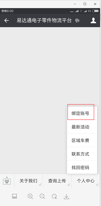 點(diǎn)擊個(gè)人中心-綁定賬號(hào),在賬號(hào)界面輸入手機(jī)號(hào)和密碼點(diǎn)登入即可綁定成功,可查款歷史訂單,庫(kù)存明細(xì),費(fèi)用明細(xì)等信息!