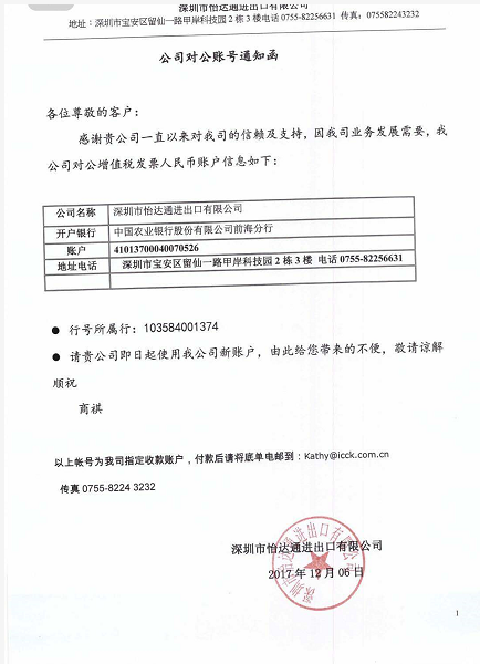 易達(dá)通公司增值稅收款賬戶變更通知