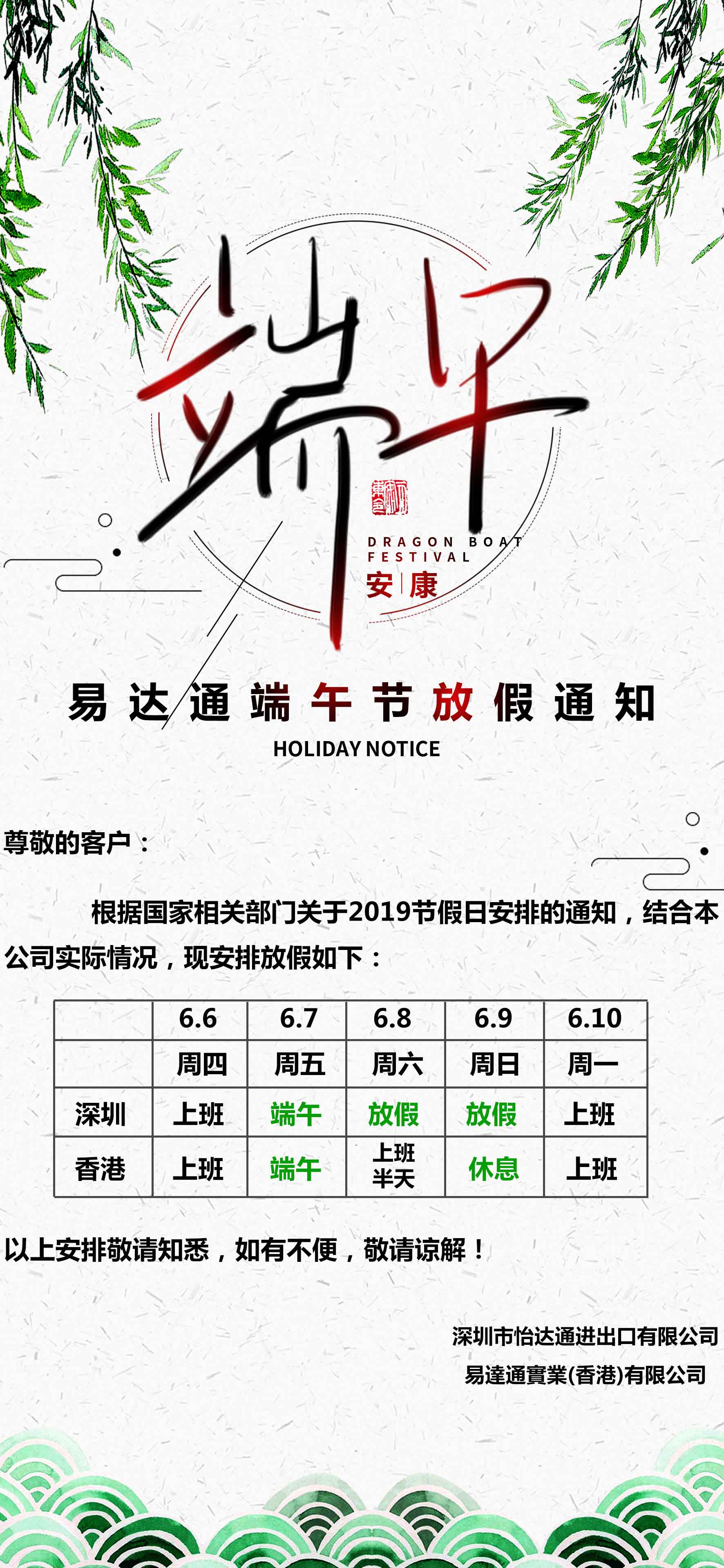 2019易達(dá)通端午節(jié)放假通知
