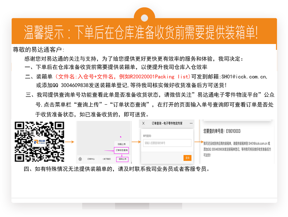 溫馨提示:下單后在倉庫準(zhǔn)備收貨前需要提供裝箱單!