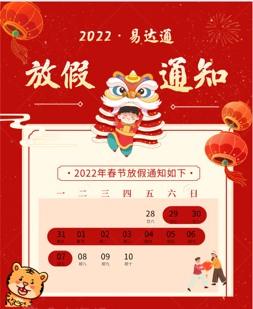 怡達(dá)通2022年春節(jié)放假安排