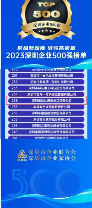 怡達(dá)通榮登深圳500強(qiáng)企業(yè)榜單